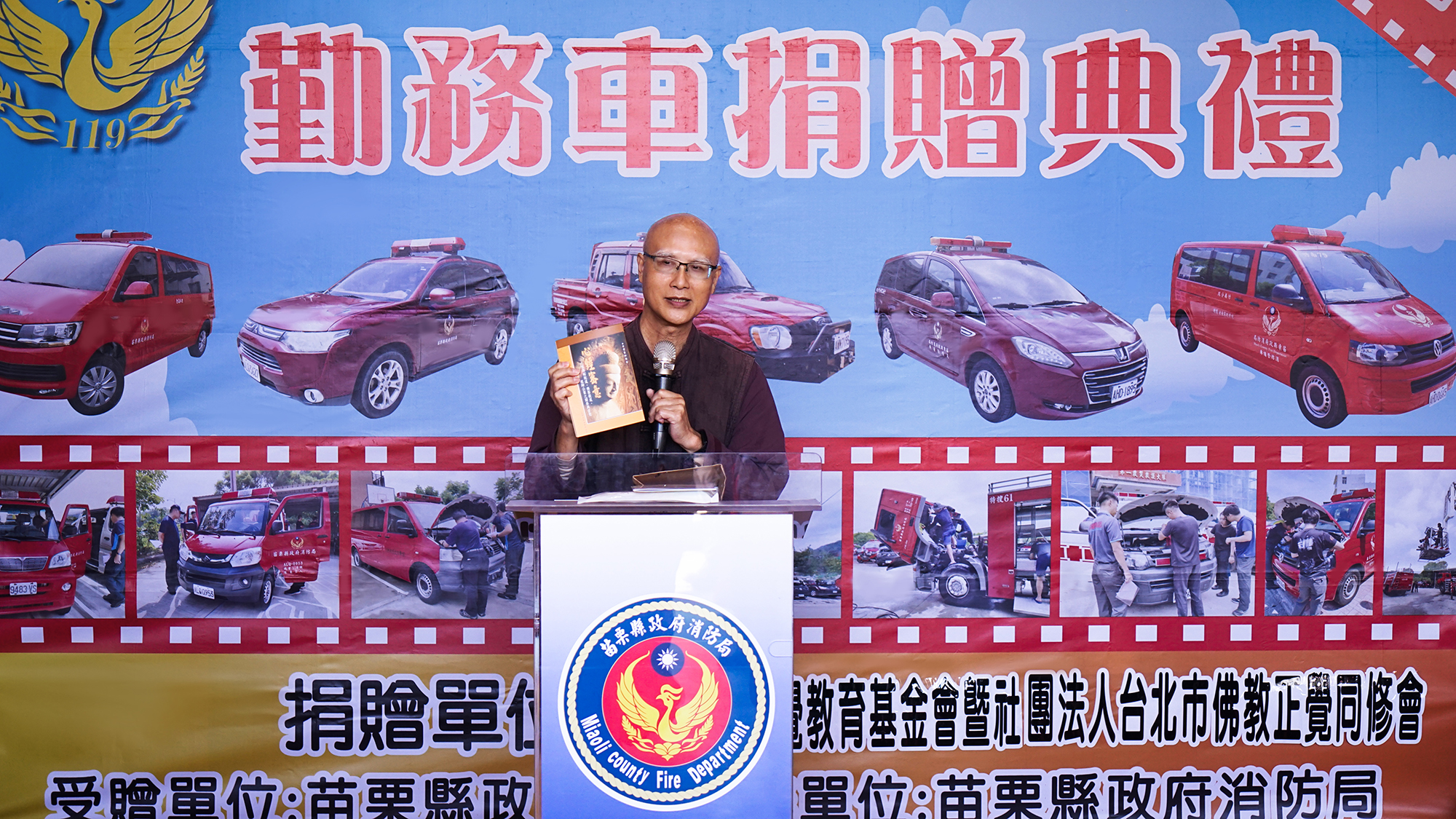 社團法人佛教正覺同修會駐會常務理事陸大元表示,七年前在竹南買寺院用地建立宗教園區,每年辦理寒冬送暖幫助需要的人,而為了與竹南建立更深厚的關係,關懷竹南鄉親,並主動詢問消防局需求,因此捐出三輛救災車等。財團法人正覺教育基金會董事長高震國也表示,基金會注重社會安全,此次捐贈與基金會宗旨吻合,此活動相當重要也很有意義。此外,正覺兩會還帶來《心經密意》等書籍跟大衆結緣,期望助益於民衆的心靈成長。